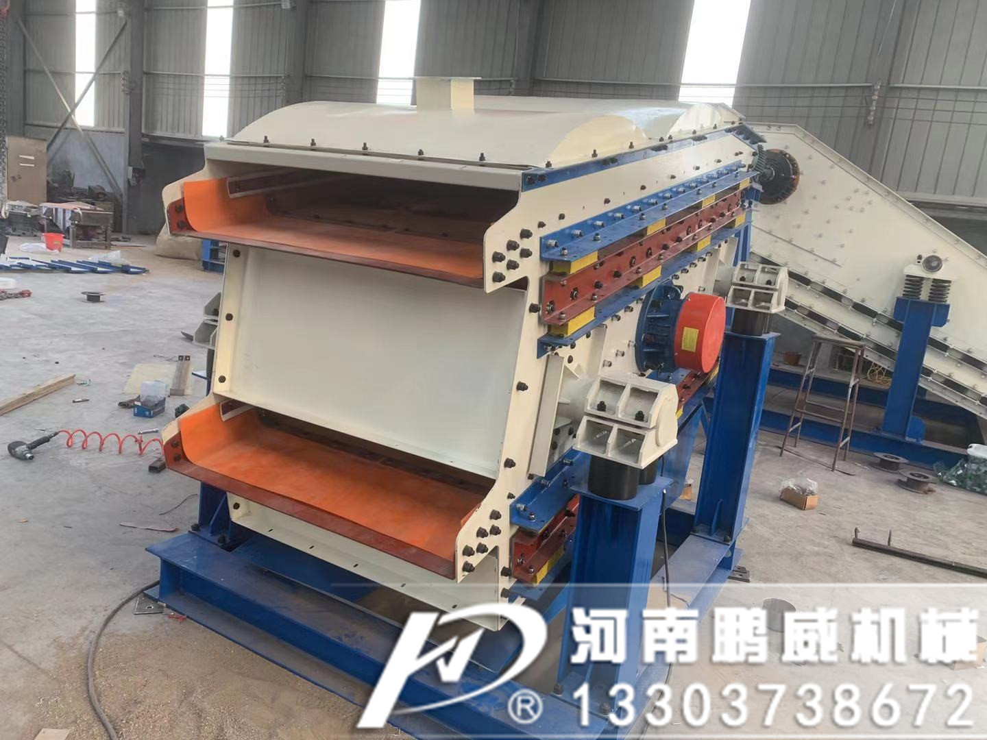特點優(yōu)勢:篩面高頻沸騰運動,能夠傳遞給物料50g的加速度,有效解決物料的篩分,確保篩孔不堵塞。高可靠性的偏心飛輪激振器承載能力大,使用壽命長。高性能篩網(wǎng)具有較好的耐磨性和優(yōu)良的物理性能,具有較長的使用壽命和較好的篩分效果。對物料波動適應(yīng)性強,操作成本低。高彈性聚氨酯篩板具有極好的耐磨性,設(shè)計使用壽命超過8760小時。篩板采用壓板式安裝,便于篩板更換維護(hù)。低噪音,設(shè)計隔振效果97%以上。同等篩分面積的篩分設(shè)備,所需電機(jī)功率小。篩分效率可達(dá)98%以上。激振強度可達(dá)50g,可解決粘細(xì)物料的篩分。采用偏心飛輪式單軸慣性激振器,激振器軸承設(shè)計使用壽命26280小時以上,可通過調(diào)整偏心飛輪的角度來調(diào)整激振器激振力大小。