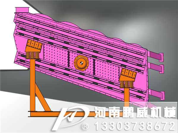 采用雙組側(cè)板電機(jī)激振器由偏心塊同步旋轉(zhuǎn)共振帶動彈性聚氨酯篩板產(chǎn)生波浪弛張振動的圓彈躍運動和直線彈躍運動,篩面傾角一般為15-25°篩板由兩端活動梁固定,配合剪切彈簧和板簧產(chǎn)生高振幅振動達(dá)到固定橫梁和活動橫梁對篩網(wǎng)的慣性力矩不斷地張弛形成一凹一凸的波浪效果達(dá)到物料良好的松散流動性同時獲得有效的物料彈躍篩分,實現(xiàn)篩分精度,篩分產(chǎn)量和防堵網(wǎng)的效果。