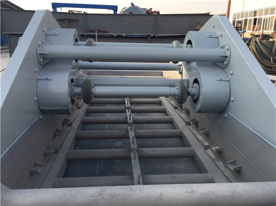 采用了雙電很自同步技術(shù),通用型偏心塊、可調(diào)振幅振動(dòng)器。主要由篩箱、激振器、支承系統(tǒng)及電機(jī)組成。通過(guò)膠帶聯(lián)軸分別驅(qū)動(dòng)兩個(gè)互不聯(lián)系的振動(dòng)器作同步反向運(yùn)轉(zhuǎn),兩組偏心質(zhì)量產(chǎn)生的離心力沿振動(dòng)方向的分力疊加,反向離心抵消,從而形成單一的沿振動(dòng)方向的激振動(dòng),使篩箱做作往復(fù)直線運(yùn)動(dòng)。篩箱內(nèi)篩板由進(jìn)料口至出料口呈負(fù)角度安裝,使液體物料在篩板上做爬坡運(yùn)動(dòng),加上振動(dòng),從而達(dá)到脫水的效果。鉀長(zhǎng)石專用脫水篩采用了雙電 自同步技術(shù),通用型偏心塊、可調(diào)振幅振動(dòng)器。主要由篩箱、激振器、支承系統(tǒng)及電機(jī)組成。通過(guò)膠帶聯(lián)軸分別驅(qū)動(dòng)兩個(gè)互不聯(lián)系的振動(dòng)器作同步反向運(yùn)轉(zhuǎn),兩組偏心質(zhì)量產(chǎn)生的離心力沿振動(dòng)方向的分力疊加,反向離心抵消,從而形成單一的沿振動(dòng)方向的激振動(dòng),使篩箱做作往復(fù)直線運(yùn)動(dòng)。